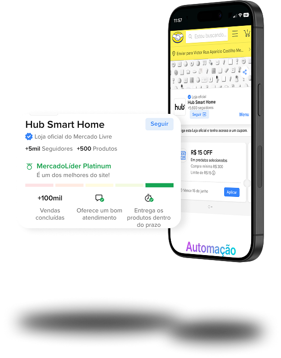 Transforme sua casa com a Hub Smart Home também no Mercado Livre! Aproveite cupons incríveis, receba seus produtos no mesmo dia e garanta frete grátis em pedidos acima de R$19. Tudo isso com a segurança e praticidade que só a compra na Loja Oficial do Mercado livre pode oferecer.